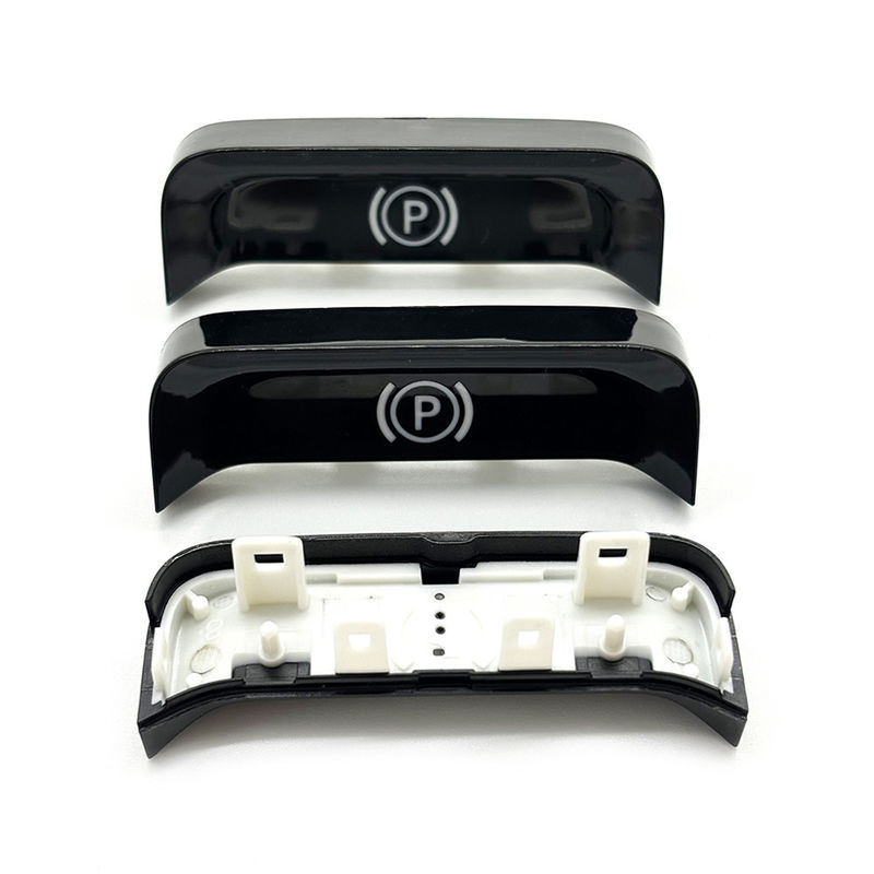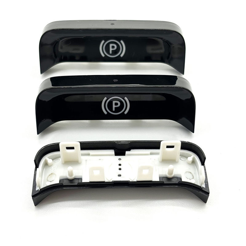 لوحة رافعة دراجة وقوف السيارات من مرسيدس هي منتج عادي مضغ مزدوج ، يجمع بين جماليات معقدة مع متطلبات أداء صارمة.الصورة الأولى مصنوعة من البوليكاربونات البيضاء، والتحدي الرئيسي هو الحفاظ على الشكل المثالي للشعار خلال الحقن الثاني ، مع تحمل درجات الحرارة العالية المعنية.يجب أن يكون للـ PC الأبيض صلابة كافية لضمان ربط ثابت مع اللقطة الثانية، وهي مادة PC/ABS سوداء (البوليكربونات/أكريلونيتريل-بوتادين-ستيرين).